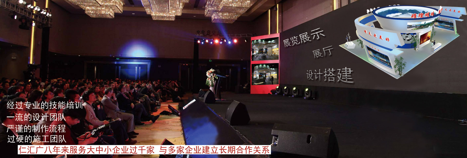 廈門仁匯廣展覽服務有限公司是一家從事展覽展示,特裝制作搭建,會議策劃布置,主場搭建,大型活動工程制作搭建,戶內外路演搭建等專業公司。
